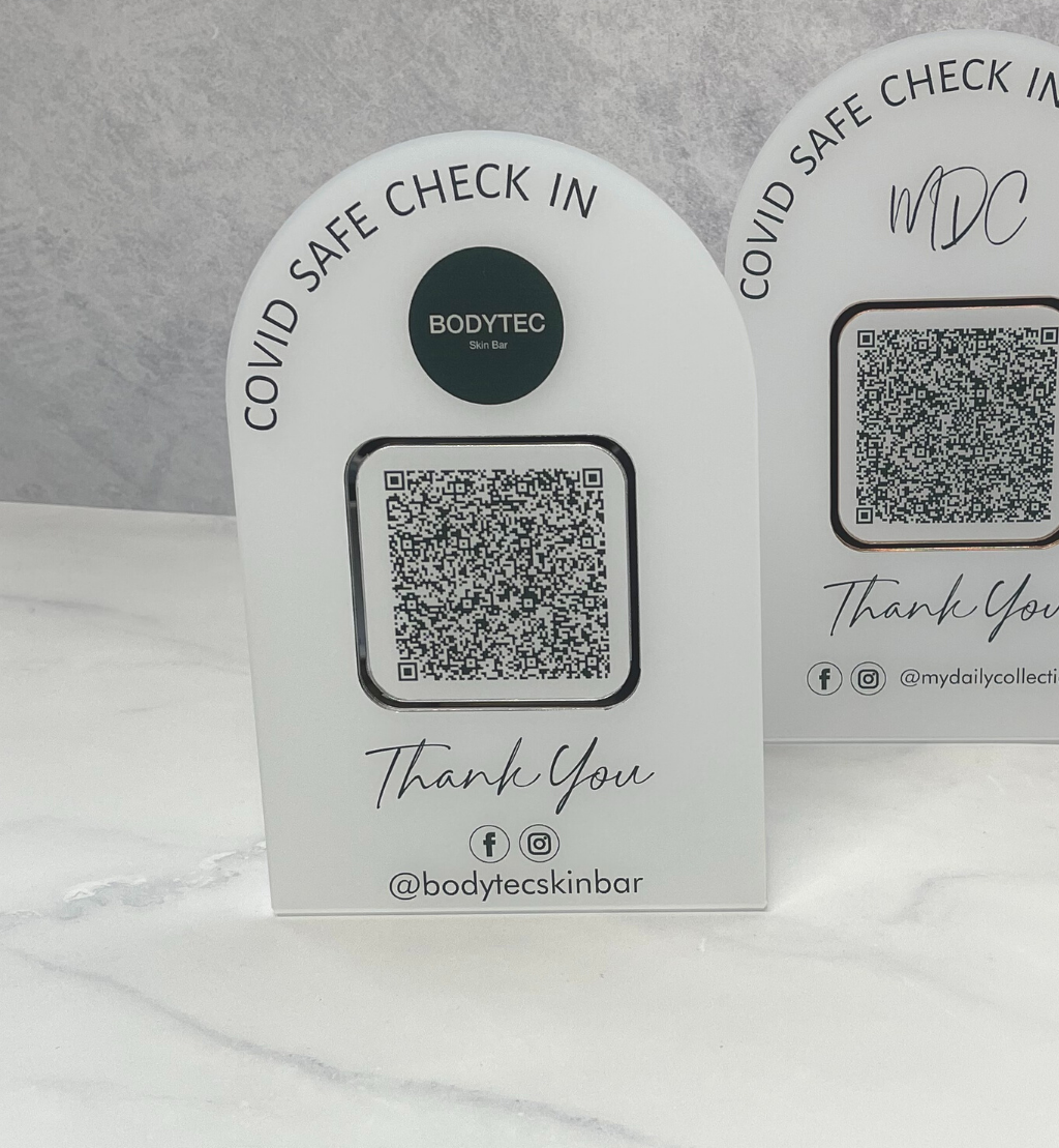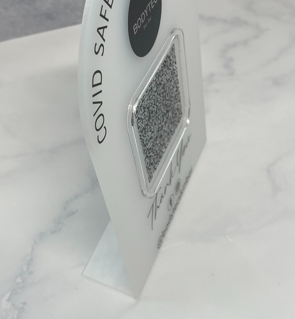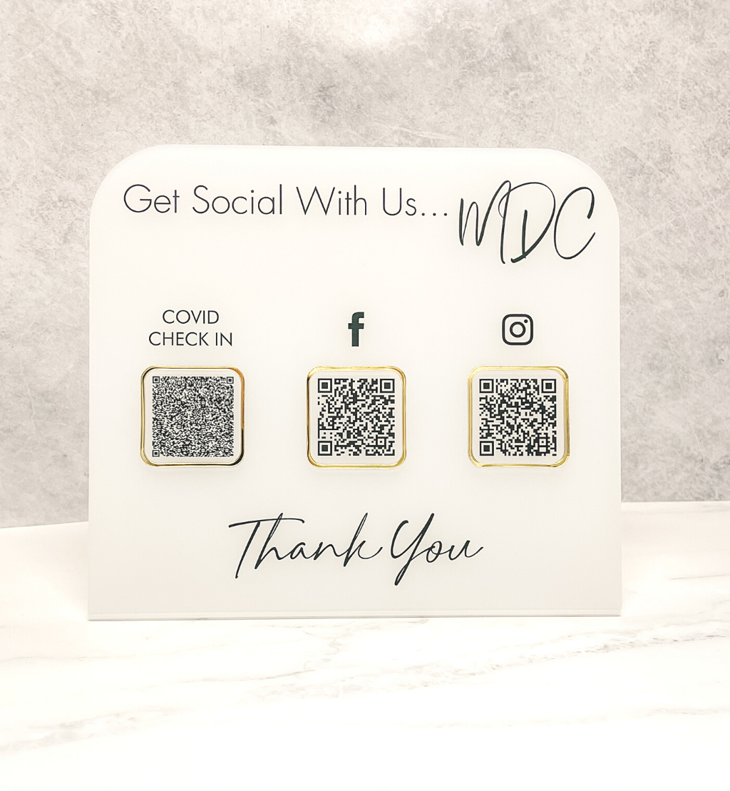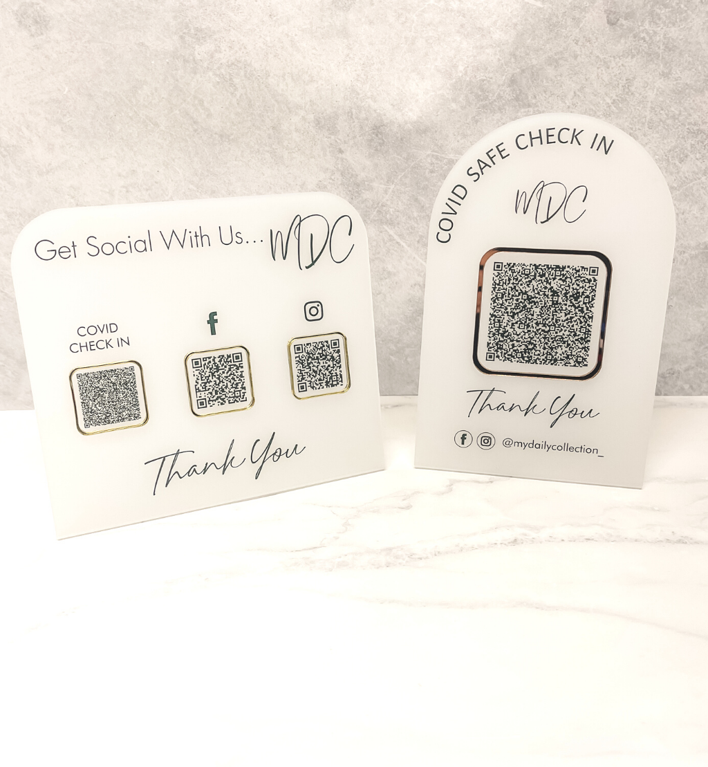 A 3D mirror acrylic frame around the QR code is either Silver, Gold or Rose Gold.