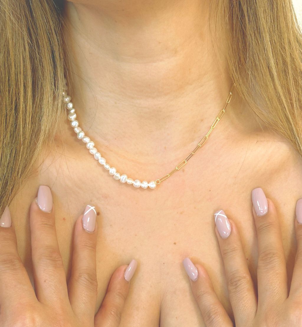 With its thoughtful and expertly crafted design, the Oblong & Pearl Necklaceย makes the perfect gift for a loved one, whether it's for a birthday, anniversary, or any other special occasion.