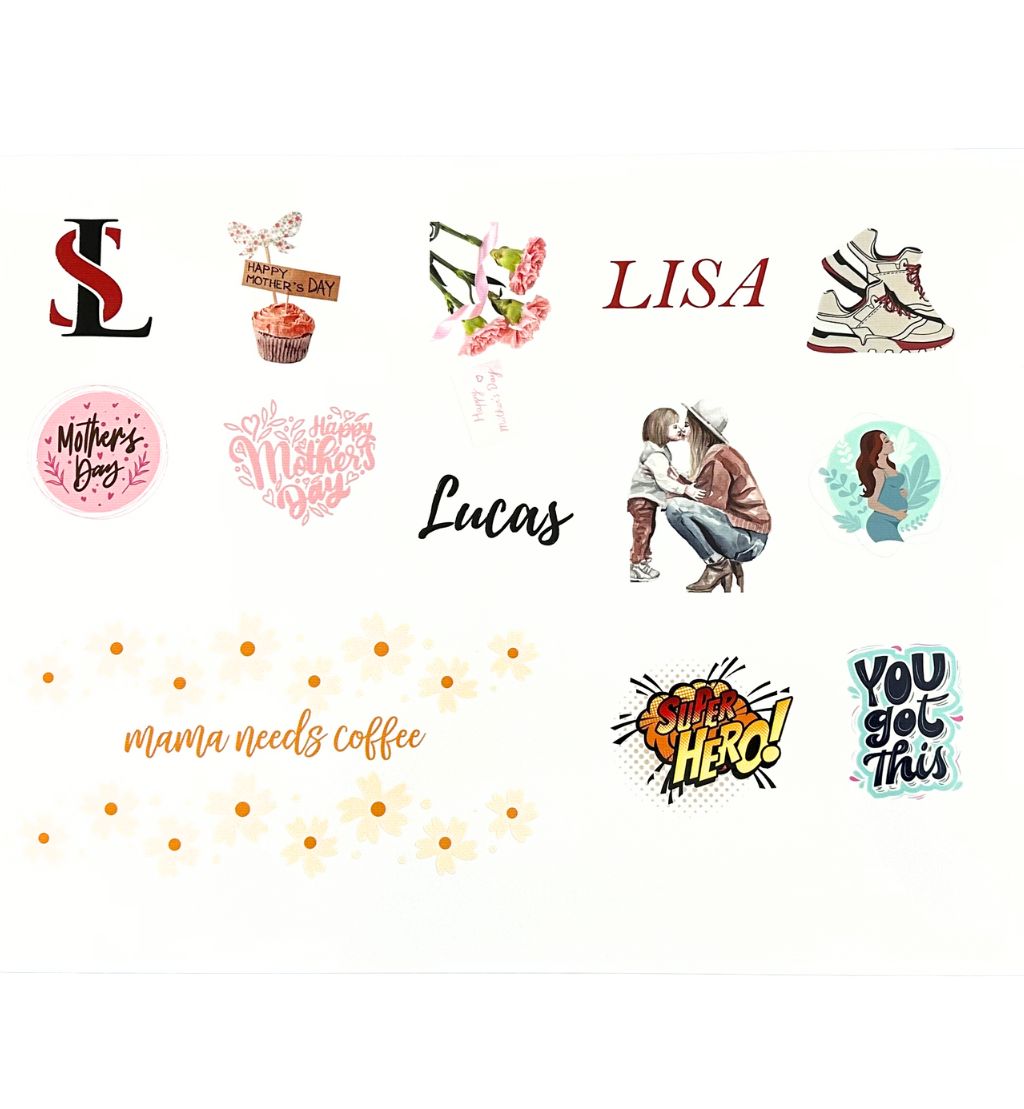 Introducing our top-of-the-line UV transfer sheets that offers high-quality, water and sun-resistant, and long-lasting color and gloss. With a quick peel-off feature, these stickers stick like magic and come off effortlessly. What sets these stickers apart is their clean graphics, leaving no background or label edges on your item's surface.